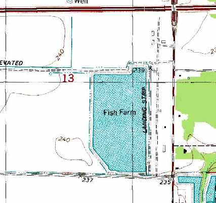 Much of the area of the flying field itself is now bermed-up & used as a fish farm.”