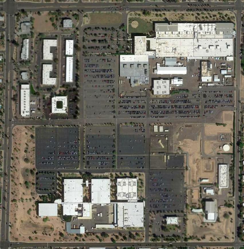 A 2015 aerial view shows the Motorola / General Dynamics plant remains, but there is no remaining trace of its airfield.