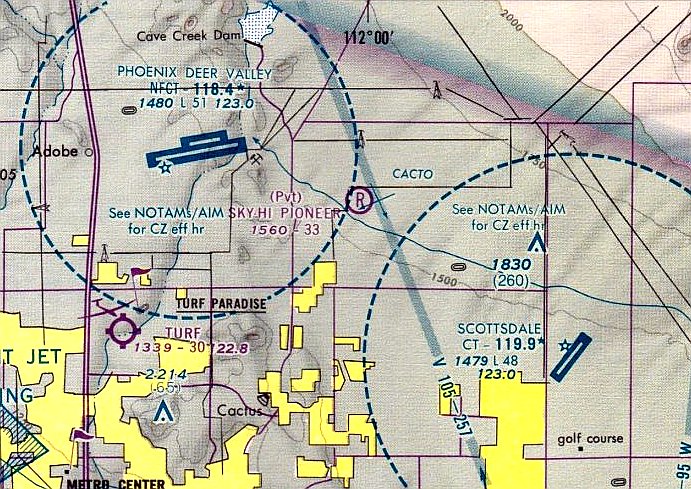 Strangely, Sky-Hi Pioneer Airport was no longer depicted on the 1988 Phoenix Sectional Chart (courtesy of Jonathan Westerling),