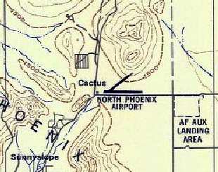 It depicted North Phoenix as having 2 unpaved runways, with a small building on the southwest corner.