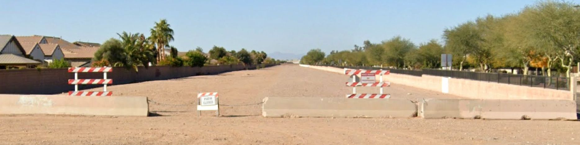 A 2024 photo looking west showed the Queen Creek Airfield runway remained intact, though with houses directly adjacent to both sides.