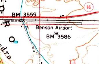 The 1958 USGS topo map depicted the Benson Airport as having a single east/west runway,