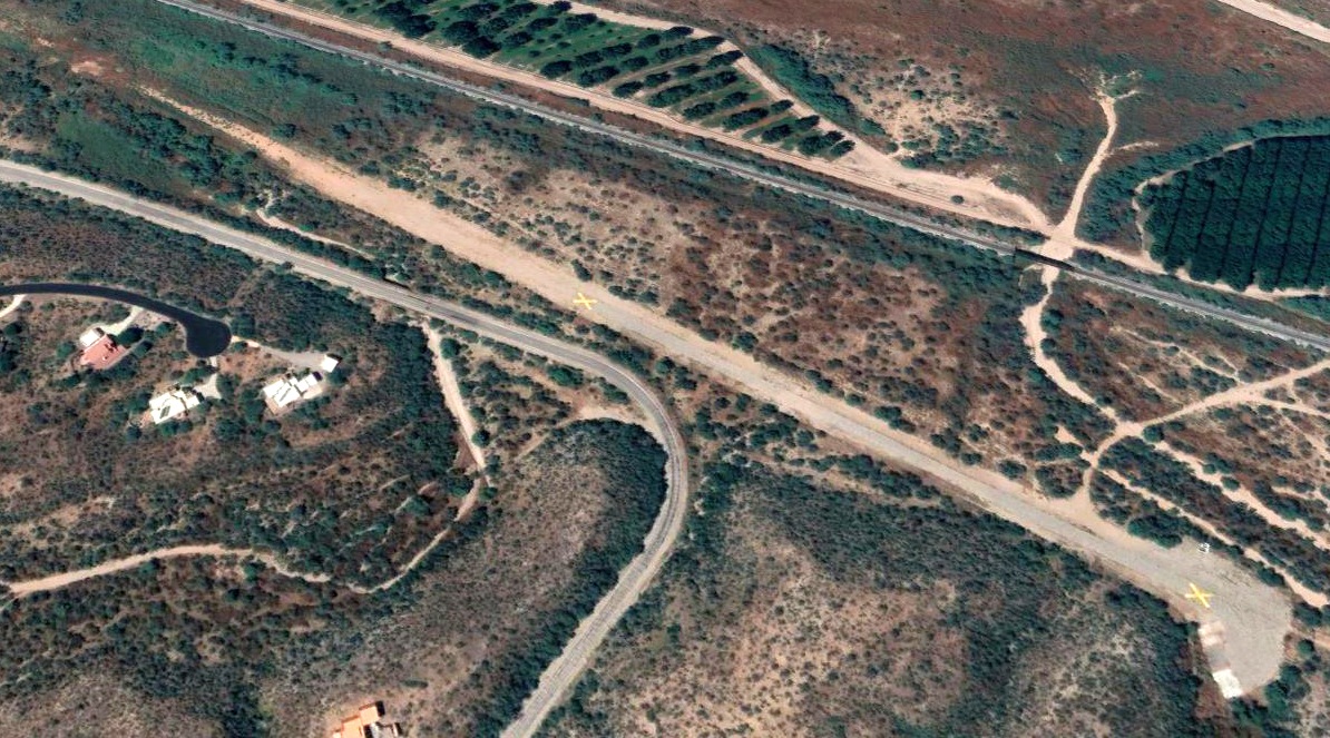 A 2021 aerial view looking west showed Continental Airfield's runway to have been marked with 2 yellow closed-runway “X” symbols, and the hangars had been removed at some point between 2018-2021.