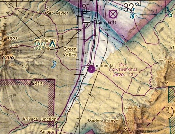 The earliest aeronautical chart depiction which has been located of Continental Airfield was on the 1977 Phoenix Sectional Chart.