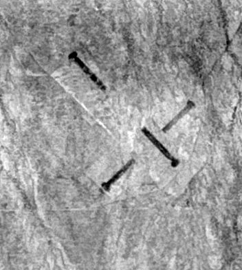 The outline of the 2 runways were plainly apparent. There did not appear to be any remains of any structures.
