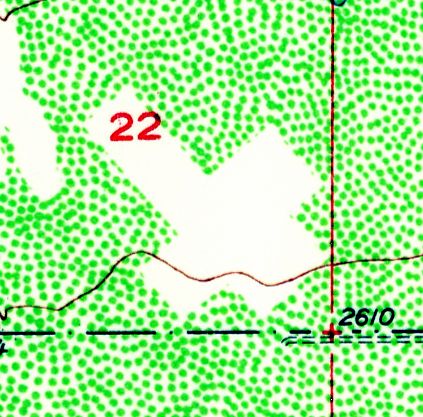 The 1957 USGS topo map depicted the cross shape of the airfield as a clearing, but did not label it.