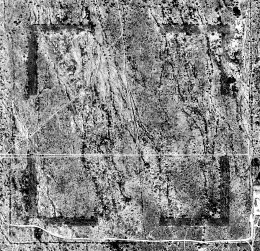 A 1958 aerial photo showed the remains of what appeared to be 4 runways laid out in a square.