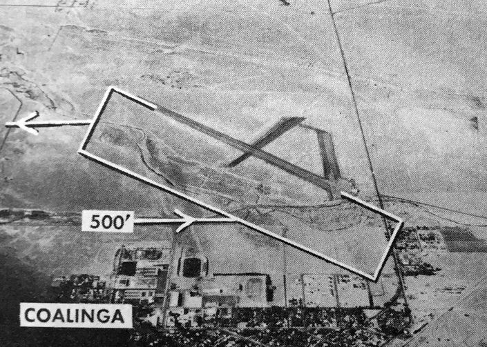 A 1945 aeronautical chart (courtesy of Dan MacPherson) depicted Coalinga as an auxiliary airfield.