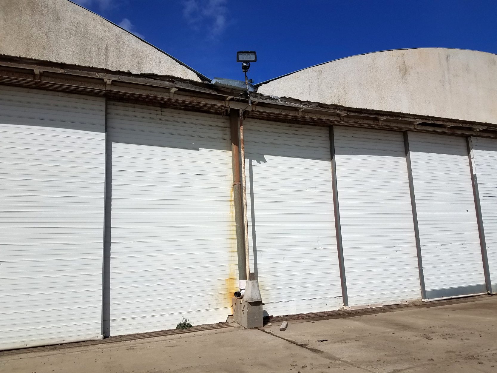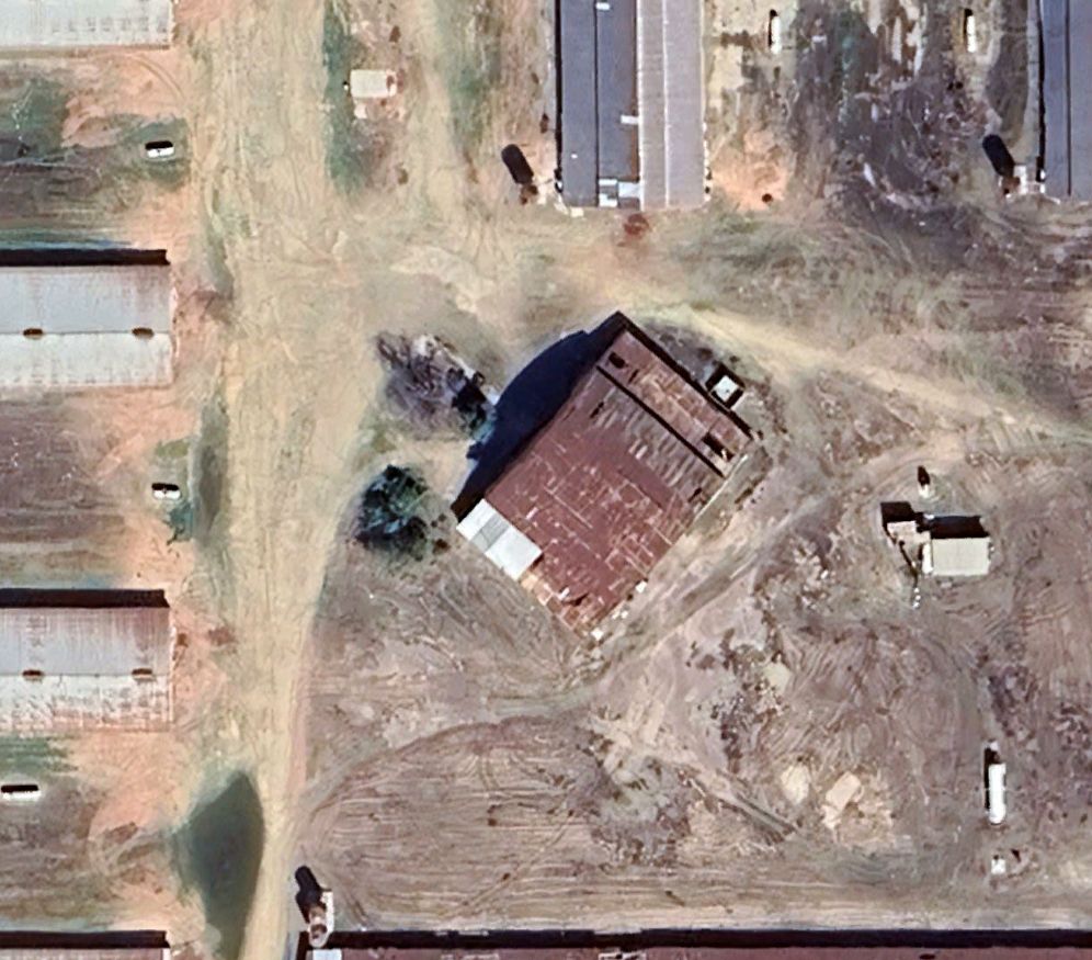 Two hangars on the northwest portion of the ramp were painted in a camouflage pattern,