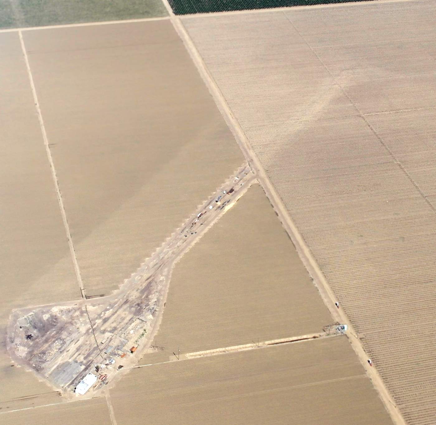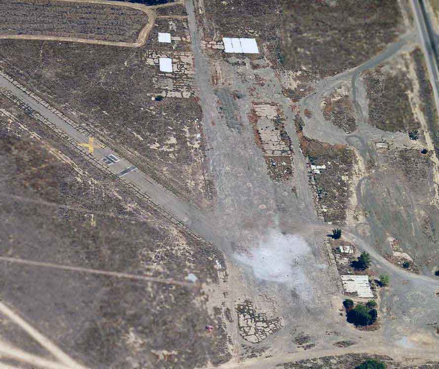 A 4/26/15 aerial view by Dallam Oliver-Lee looking east at the remains of the Helm Field runway.