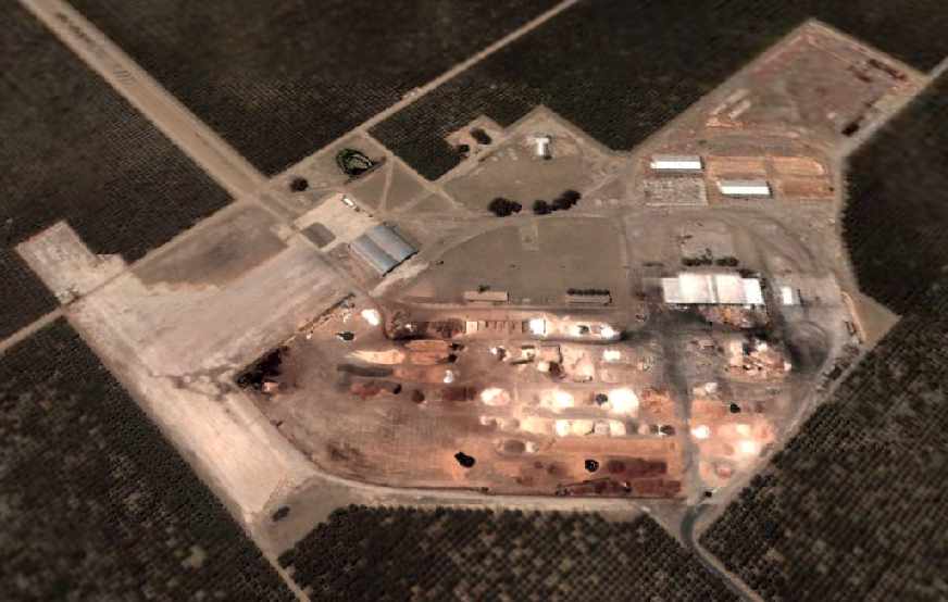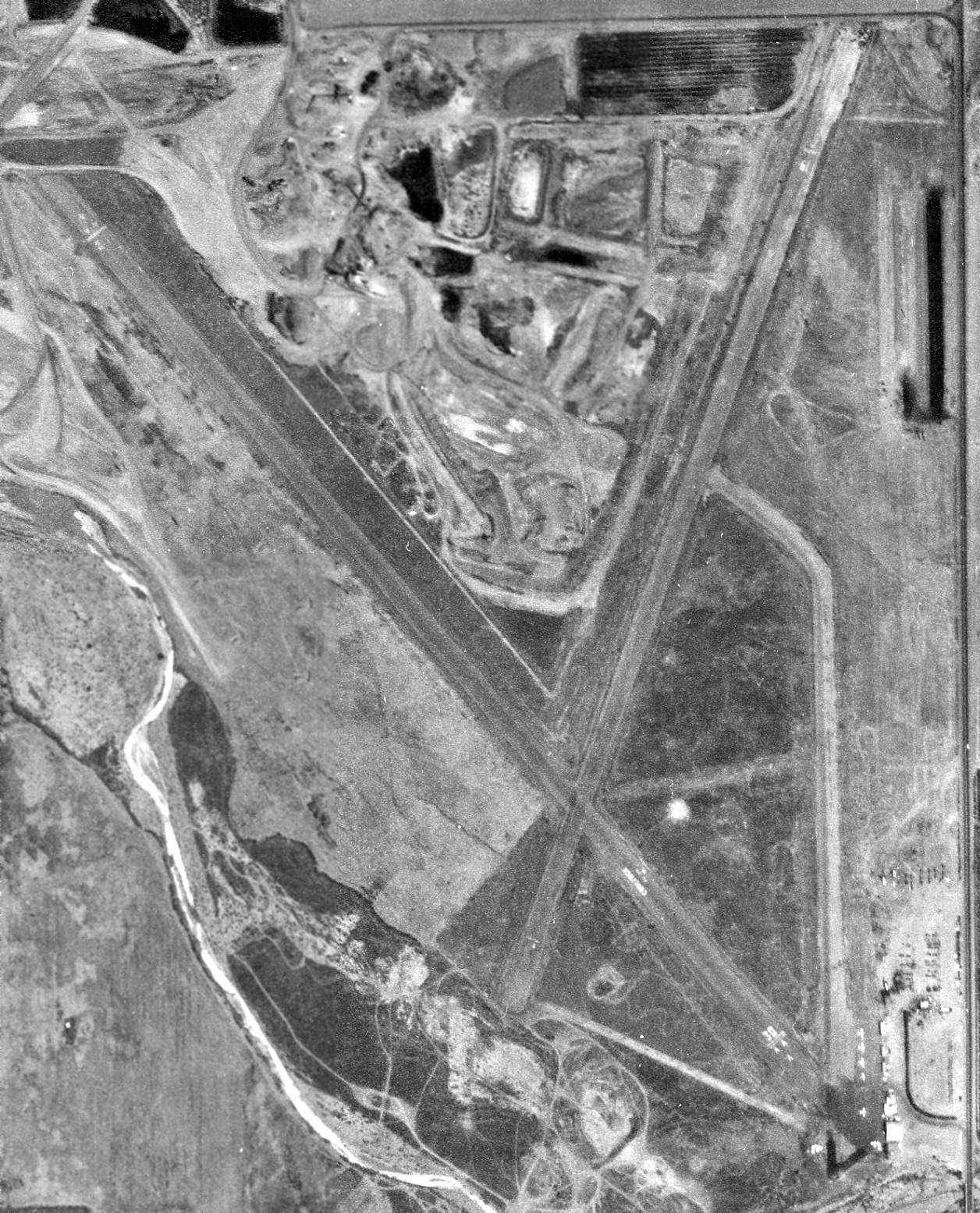 water reservoir & water well, taxiways, runway, landing field, and 2 hangars.