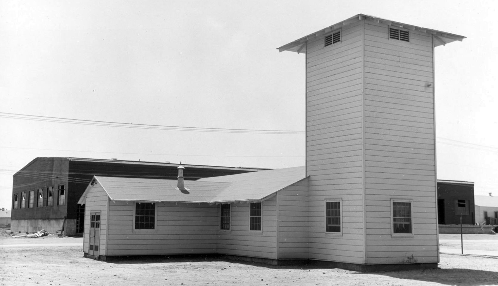 An 8/8/42 photo of Lemoore AAF's parachute building.