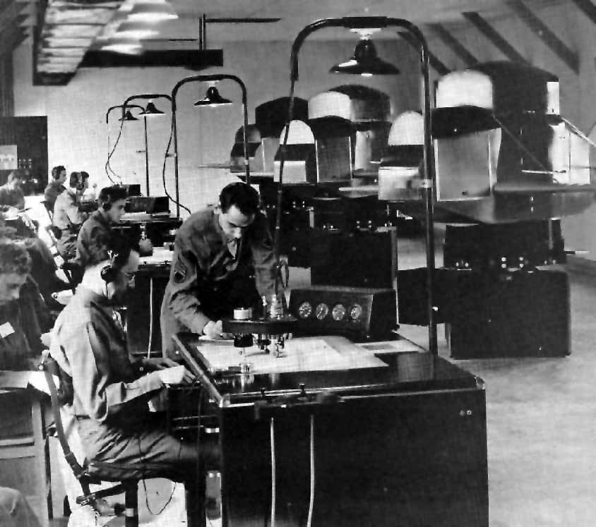An undated photo of flight training at Lemoore AAF using Link Trainers