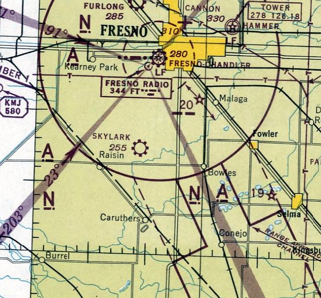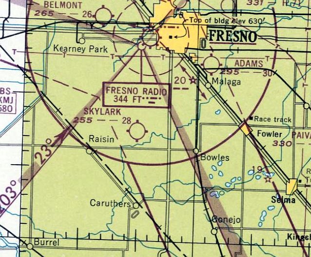 The last aeronautical chart depiction which has been located of the original Coalinga Airport