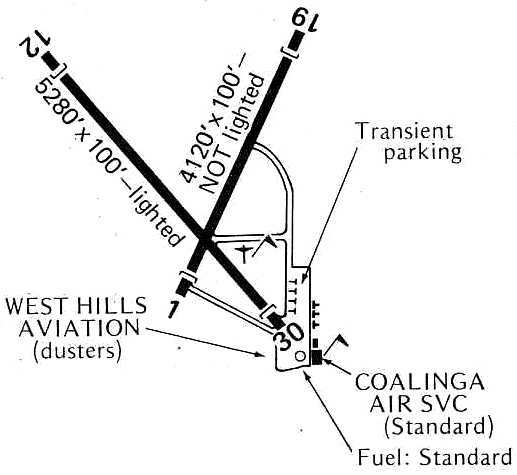 It described Coalinga Municipal as a 220 acre field having 2 oiled runways, with the longest being a 3,000' northwest/southeast strip.