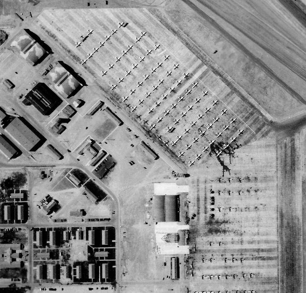 It depicted an extensive airfield, with a long concrete ramp on the west side, on which were parked no less than approximately 230 single-engine aircraft.