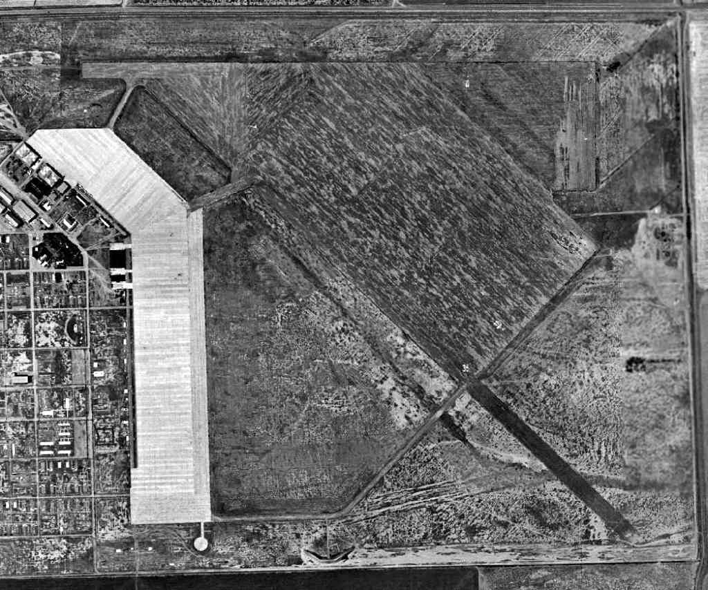 The 1944 USGS topo map depicted an open area north of the town, simply labeled as “Airport”, without any other detail.
