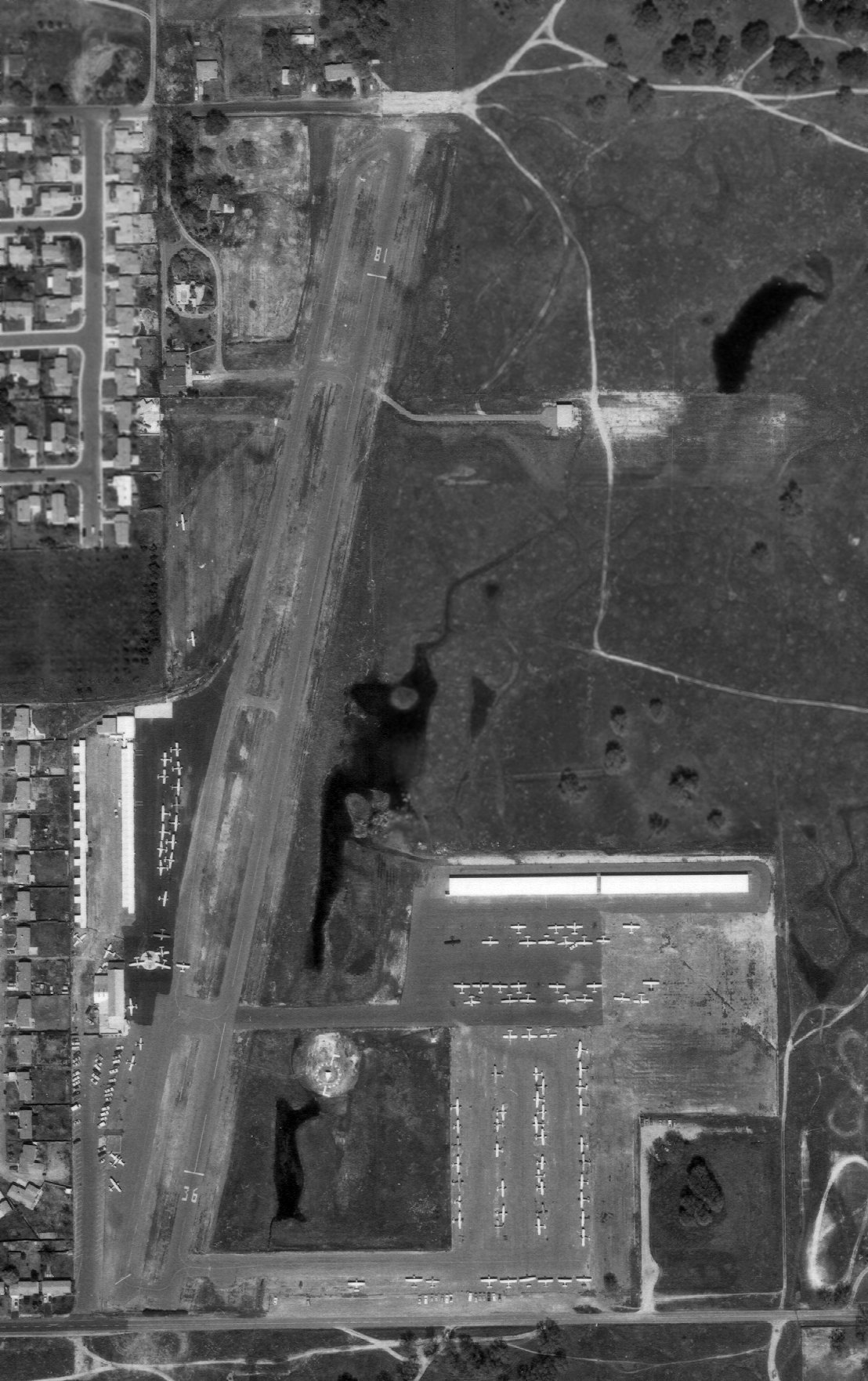 John Hockenbury recalled, "Sunset Avenue still runs across the foreground. You can see tall bushes off the approach end of Runway 36.