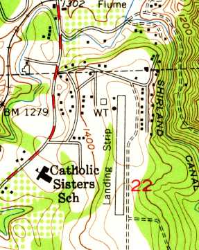 The single runway of Skyridge Airport was labeled simply as “Landing Strip” on the 1953 USGS topo map.