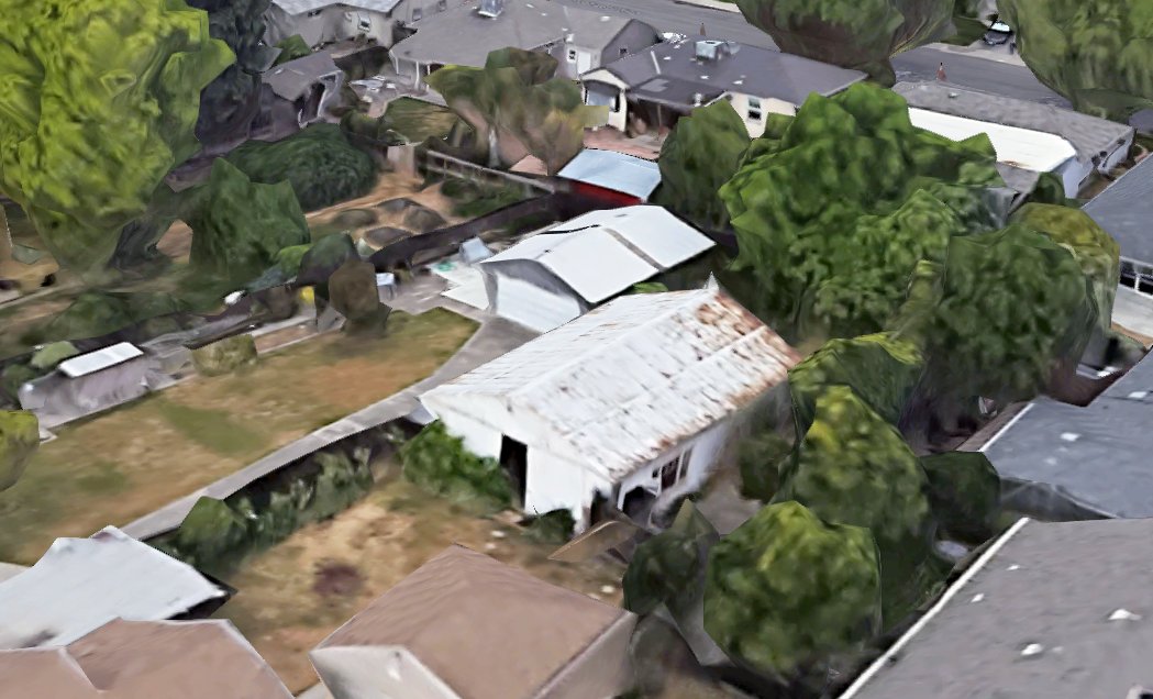 A 2022 3-D image looking southwest at the Baldani Airfield hangar.