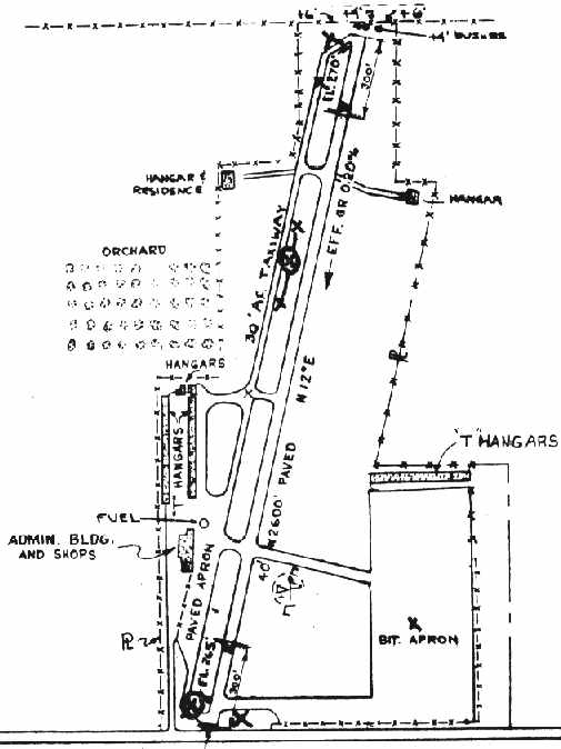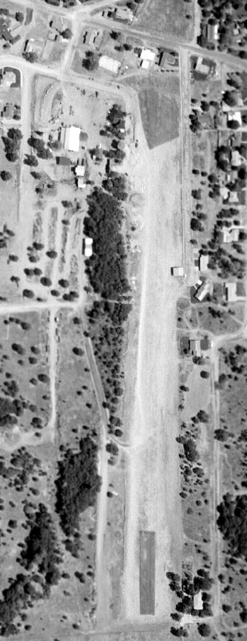It was described as being a 1,500' x 1,500' L-shaped field, with am 1,800' northeast/southwest sandy clay soil runway, with 2 hangars on the east side.