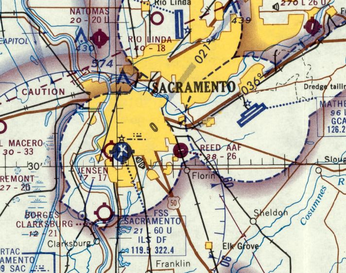 The last aeronautical chart depiction which has been located of Reed AAF was on the January 1967 Sacramento Sectional Chart.