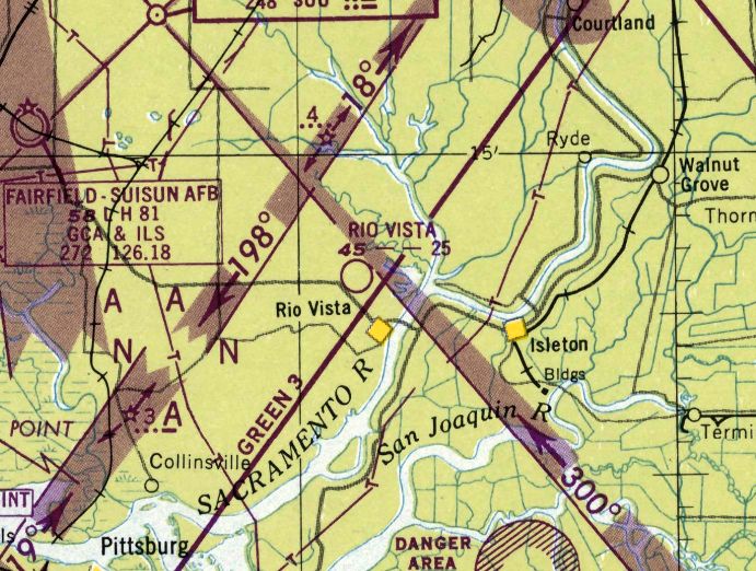 Rio Vista was depicted on the 1967 Sacramento Sectional Chart (courtesy of John Voss) with a single 2,180' asphalt runway.
