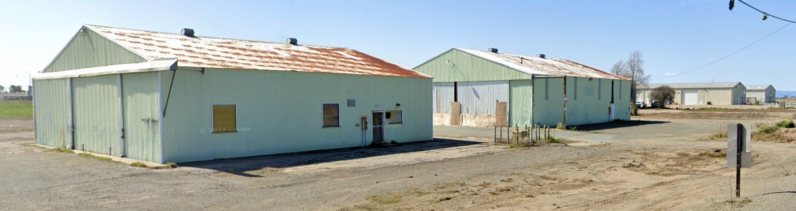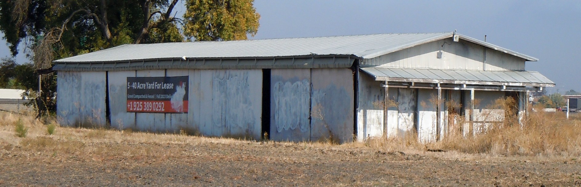 A 2023 photo looking west at a row of former hangars which remains on the northeast side of the original Rio Vista Airport site.