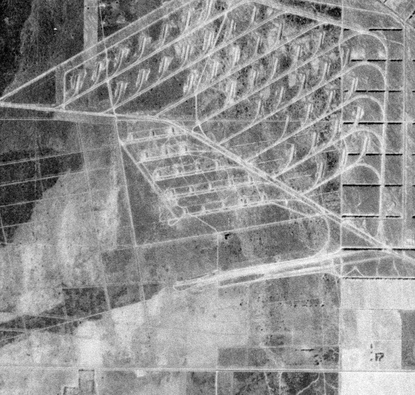 An 8/25/43 aerial view looking west at K Field (from the National Archives, courtesy of Brian Rehwinkel).