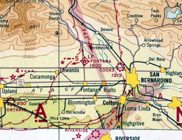 The last aeronautical chart depiction which has been located of Colton-Morrow Airpark was on the January 1976 LA Sectional Chart.