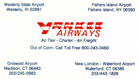 A circa 1974-77 business card for New London's Yankee Airways (courtesy of Ted Frison).