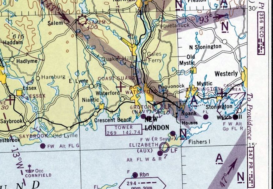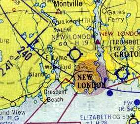 New London Waterford Airport, as depicted on the 1975 NY Sectional Chart (courtesy Mike Keefe).