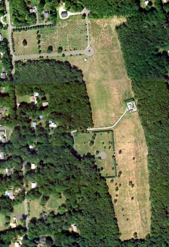 A 2019 aerial view looking southeast showed that the runway & buildings at Jonnycake Airport remained intact though deteriorated.