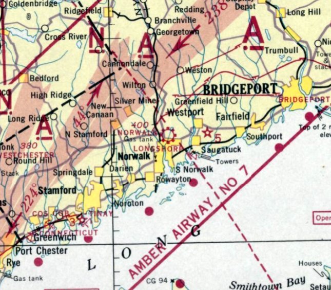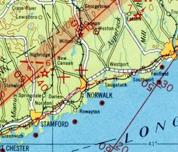 The last aeronautical chart depiction which has been located of Norwalk Airport was on the March 1940 NY Sectional Chart,