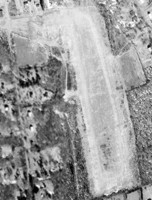 A 2005 aerial photo depicted closed-runway Xs painted on the runway, and no aircraft on the field.