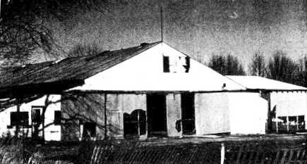 The flight shack, pumps, parking lot, and school hangar (and what would become the taxiway)
