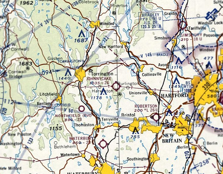 The earliest aeronautical chart depiction which has been located of Johnnycake Airport was on the January 1961 NY Sectional Chart.
