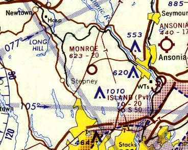 Monroe Airport, as depicted on the January 1945 NY Sectional Chart (courtesy of Ron Plante).