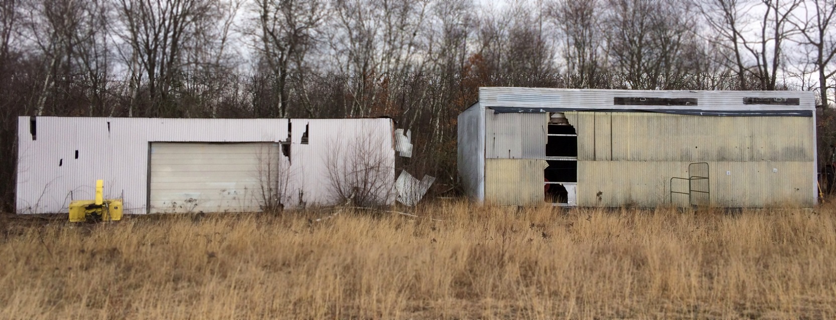 A 4/5/20 photo by Alex T.D. of 2 hangars which remain at the site of Mountain Meadow Airport.