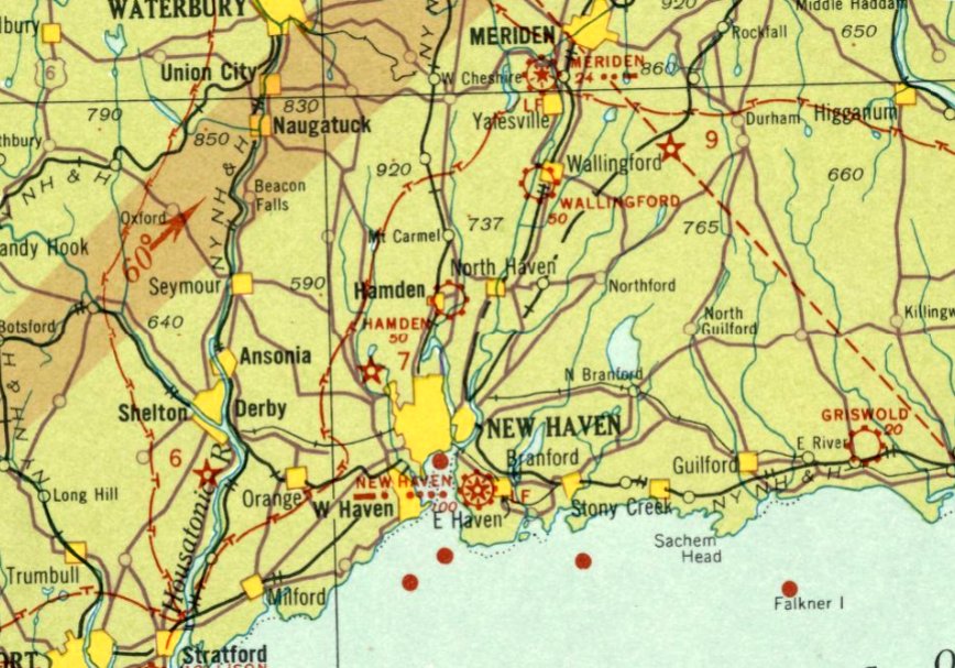 Hamden Airport, as depicted on the August 1932 NY Sectional Chart.