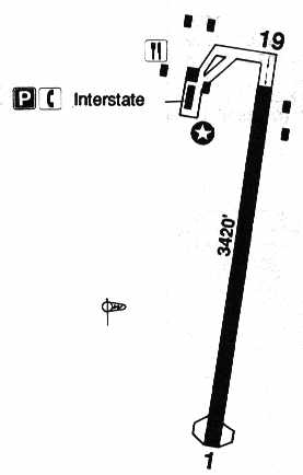 Several buildings were depicted on the northwest & northeast side of the runway, including the offices of Interstate Aviation.