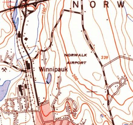 which depicted Norwalk Airport as an open area with a few small buildings along the periphery.