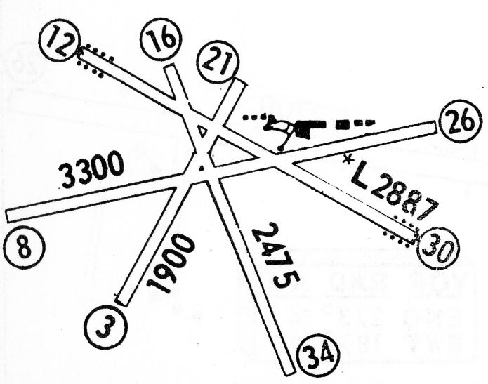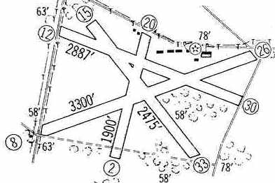 It was described as having a total of 4 runways, with the longest being a 3,300' turf strip.