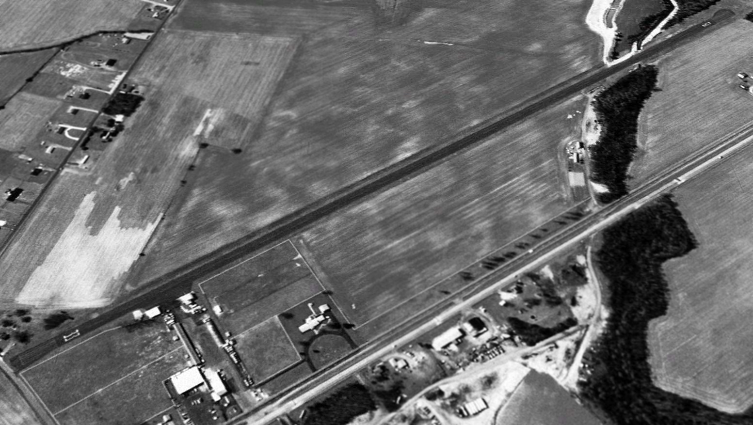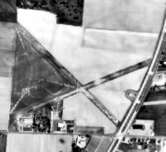 The 2 runways of the Du Pont Airport were still fairly distinct in a 1968 aerial photo,