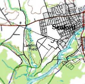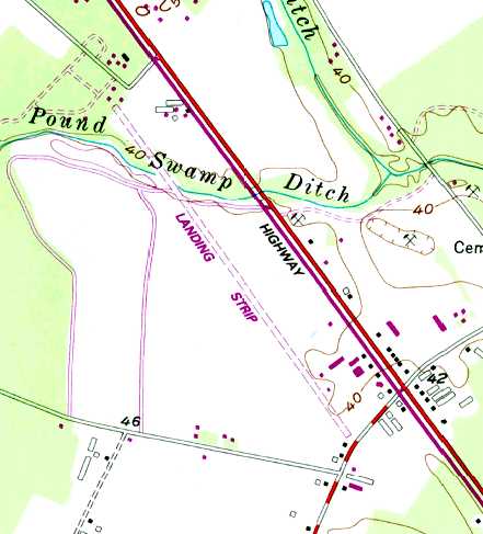 The 1955 USGS topo map depicted the Seaford Du Pont Airport as consisting of 2 perpendicular unpaved runways, labeled “Private Airfield”.
