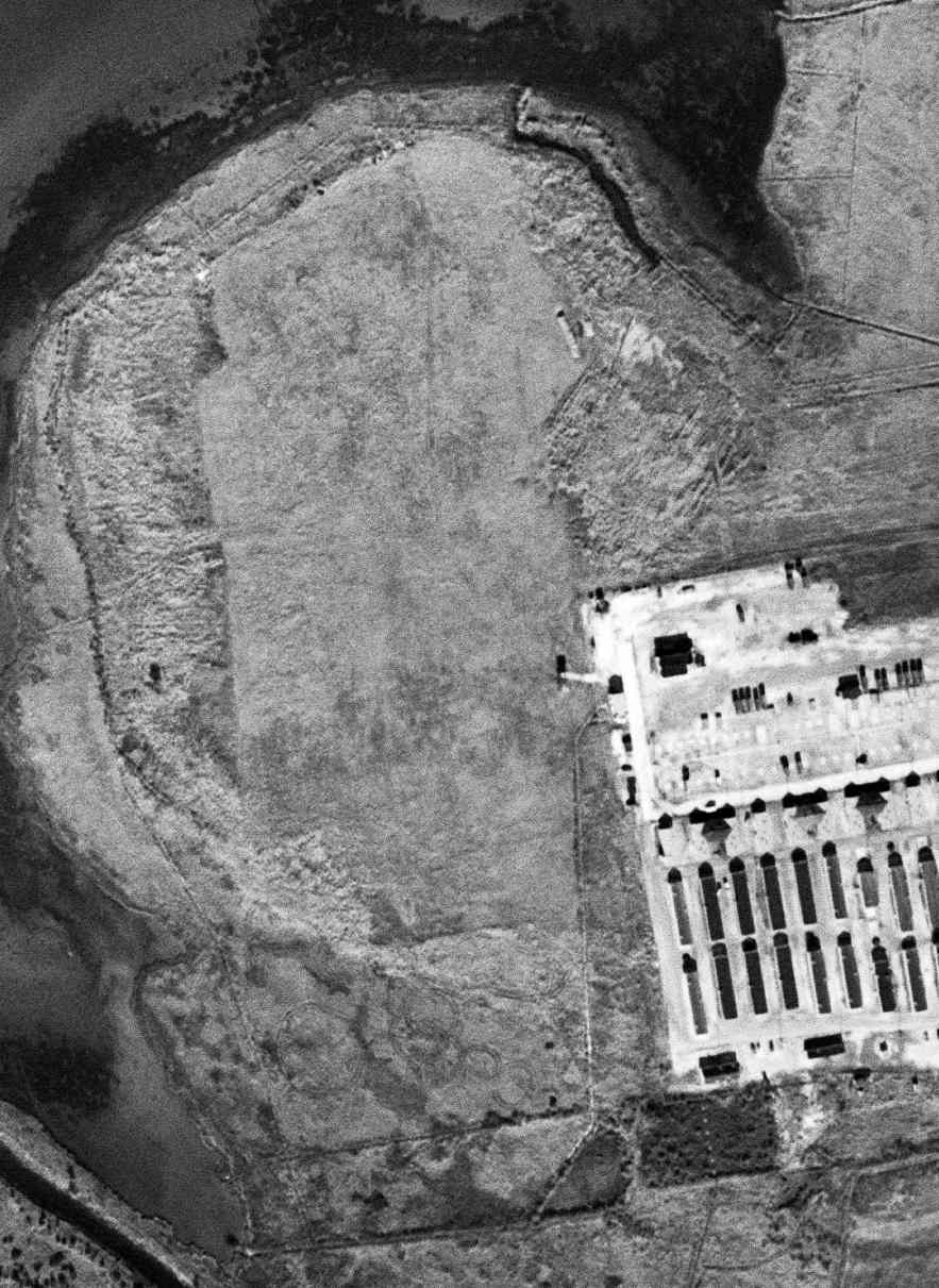 as only farmland was depicted at the site on a 1937 aerial photo.