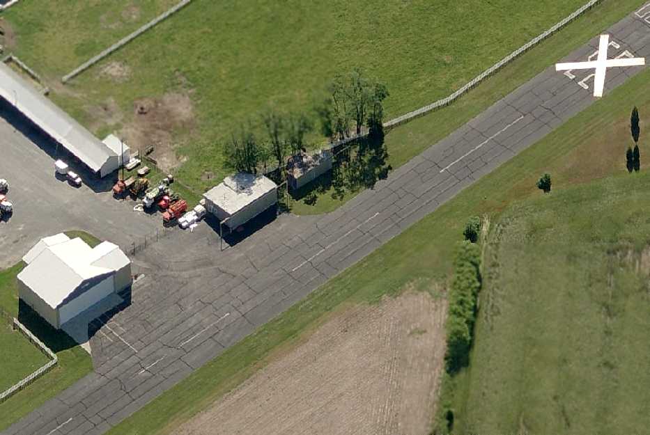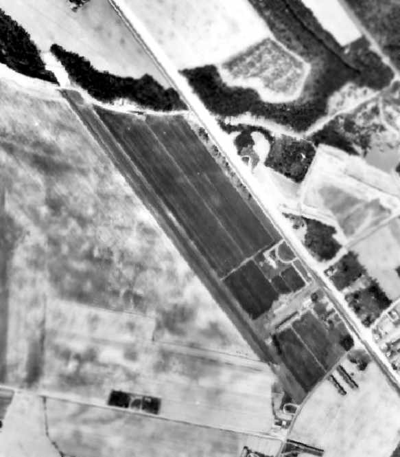 The field consisted of 2 grass runways, with a circular airport marking southwest of the runway intersection.