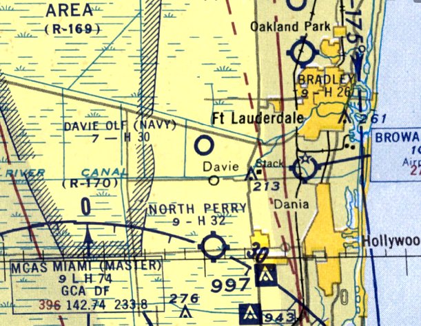The last aeronautical chart depiction which has been located of "Davie OLF (Navy)" was on the February 1956 Miami Sectional Chart.