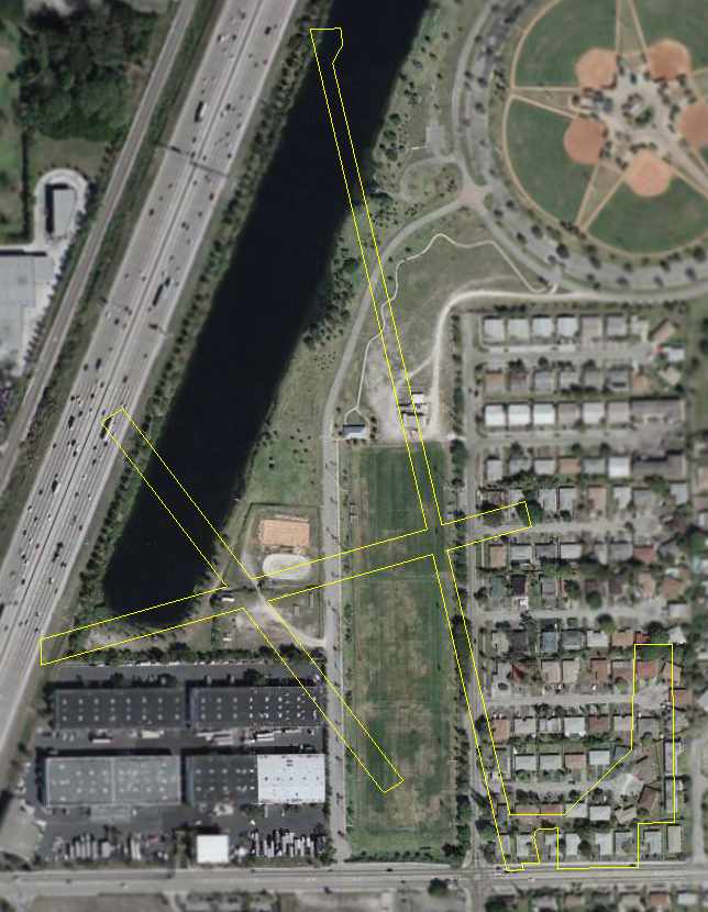 The site of MacArthur Field is located on the Northwest side of the intersection of Moffet Street & South Dixie Highway.