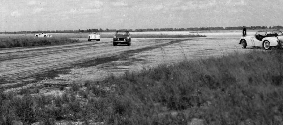 A circa 1960s National Archives photo (courtesy of Brian Rehwinkel) of several sports cars racing on the abandoned runways of Forman Field.